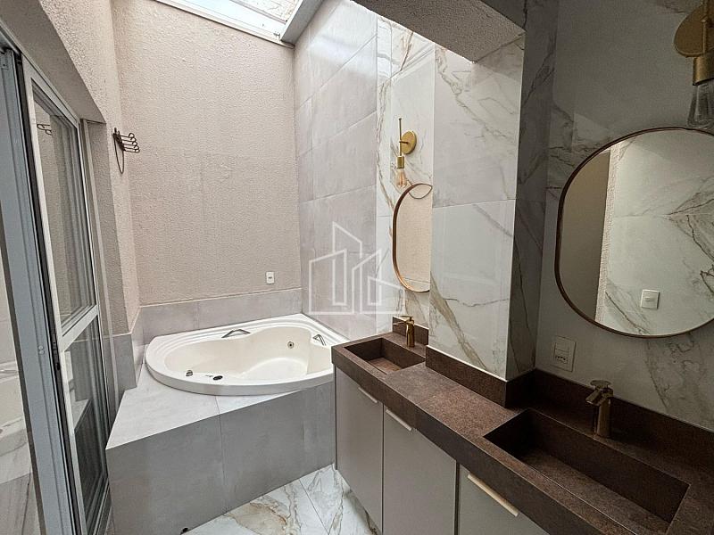 • Suíte no andar superior com armário planejado e hidromassagem e pia dupla 🛁
