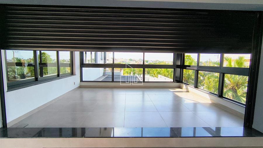 - Sala com pé-direito alto, dividida em 3 ambientes: estar, jantar e TV