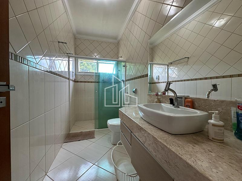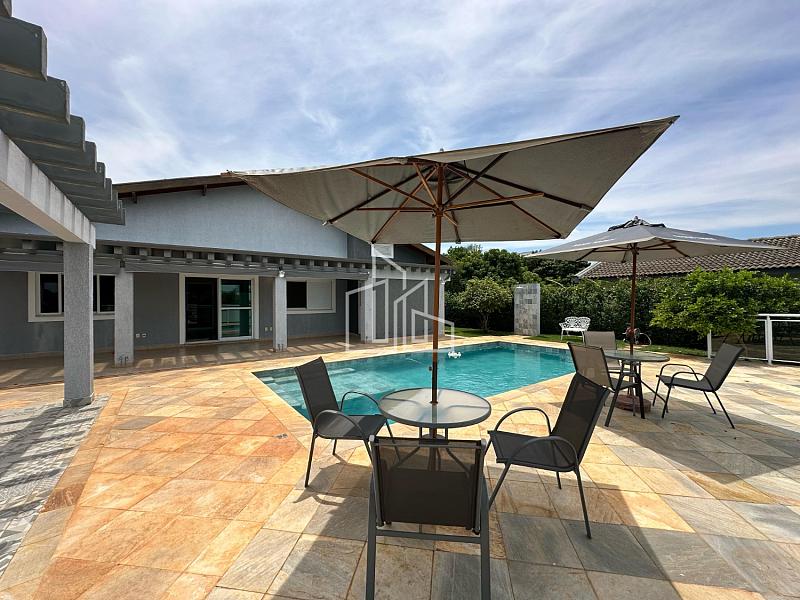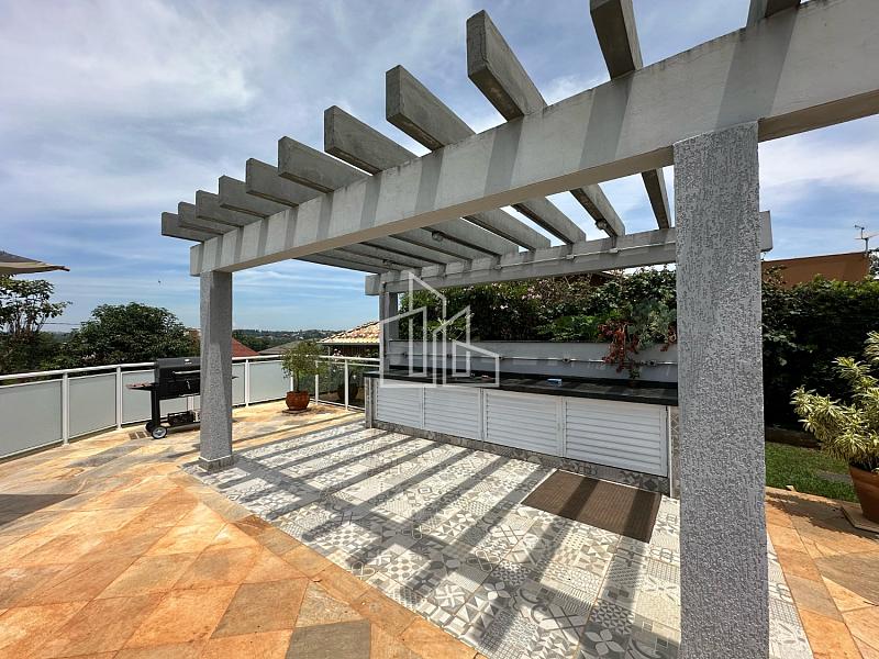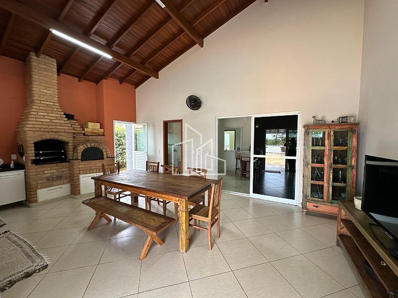 Ela possui 3 dormitórios, sendo 1 suíte, 4 banheiros, lavabo, sala de estar, sala de jantar, sala de TV, cozinha, lavanderia com depósito, ampla área gourmet com churrasqueira e forno a lenha.