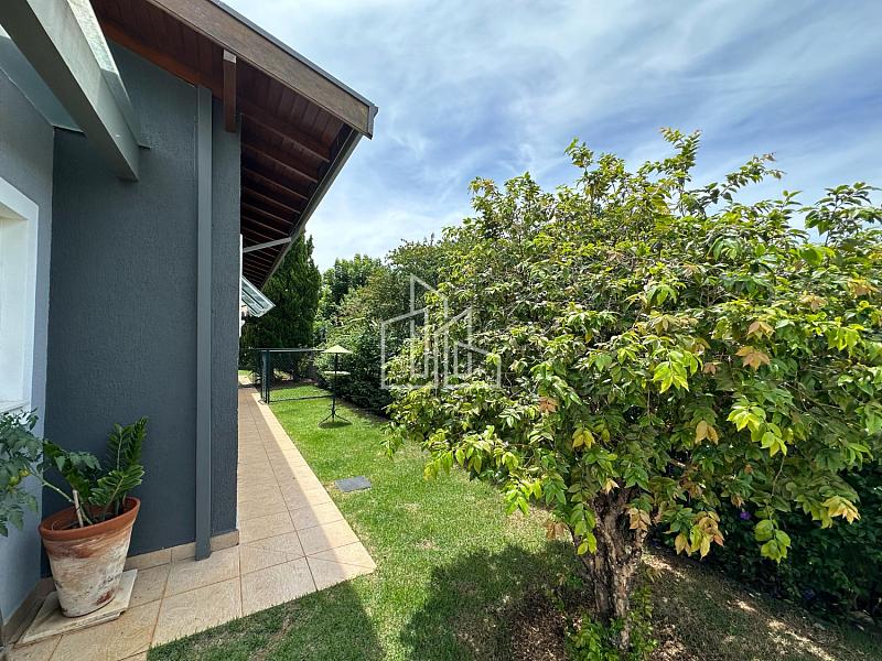 Um belo quintal gramado com platô, podendo ser utilizado como mini campo de futebol, algumas árvores frutíferas, uma pequena horta, 2 canis nas laterais da casa. Na parte da frente do imóvel um belo gramado e mais 2 depósitos. Amplos corredores laterais fechados em cerca viva.