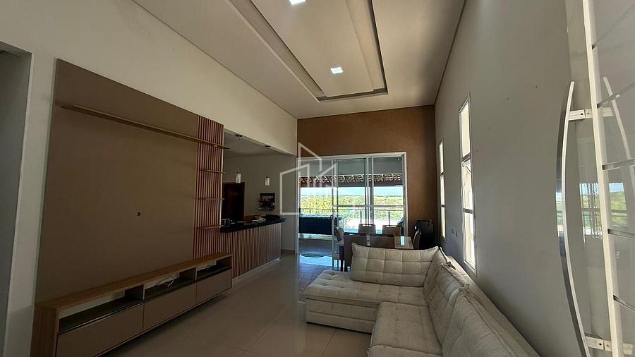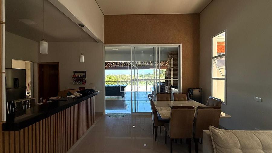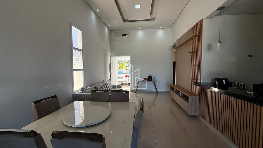 Sala de estar e jantar integradas.