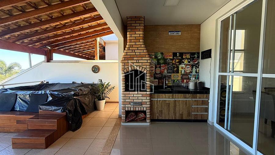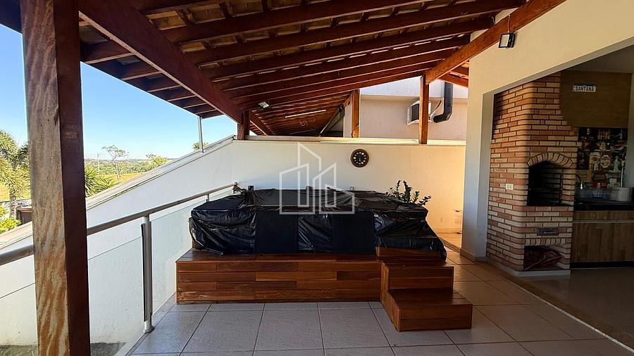 Área gourmet completa com banheiro, churrasqueira e jacuzzi.