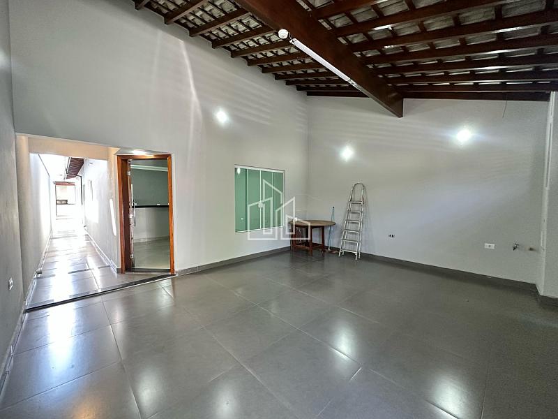 Casa ampla com garagem coberta para dois carros, quintal nos fundo com área gourmet com banheiro.
