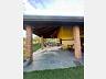 - Área gourmet com churrasqueira e banheiro externo, perfeita para refeições ao ar livre.