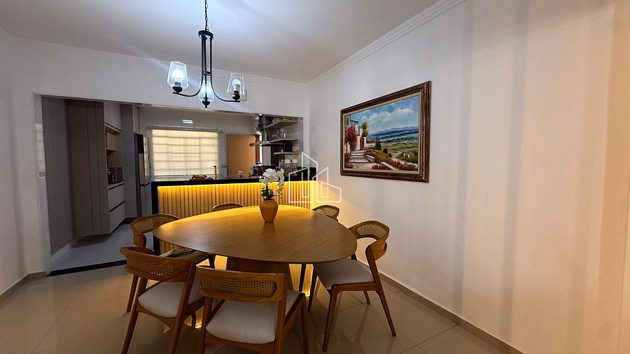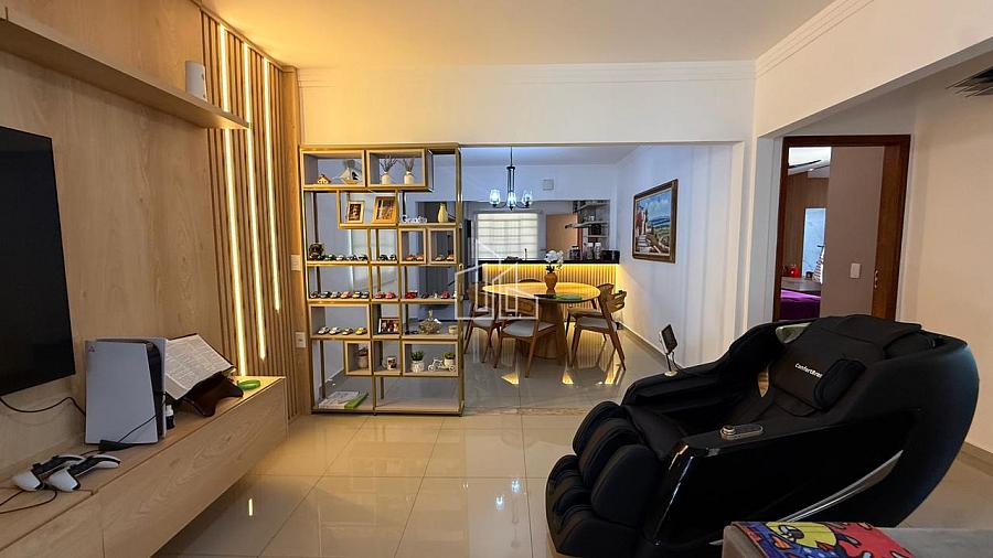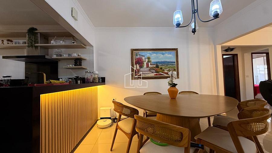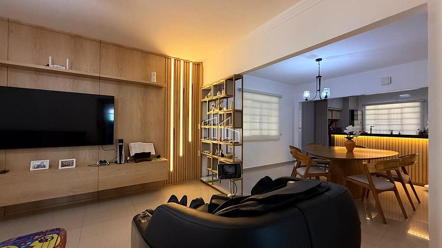* ⁠Sala de jantar e estar integradas com móveis planejados e iluminação